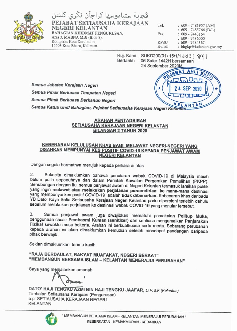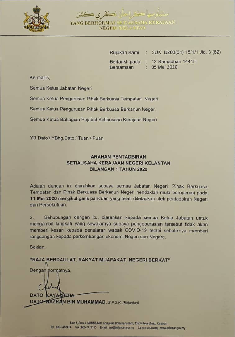 SURAT MAKLUMAN PENGOPERASIAN SEPENUHNYA PERKHIDMATAN KERAJAAN NEGERI KELANTAN