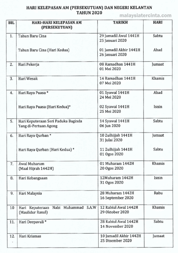 cuti umum kelantan 2020